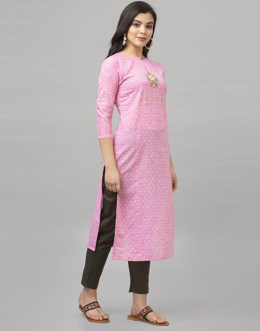 Sparkling Pink Coloured Embroidered Cotton Kurti
