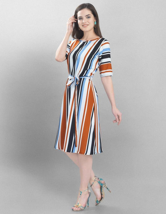 Standard White Coloured Printed Crepe Dress