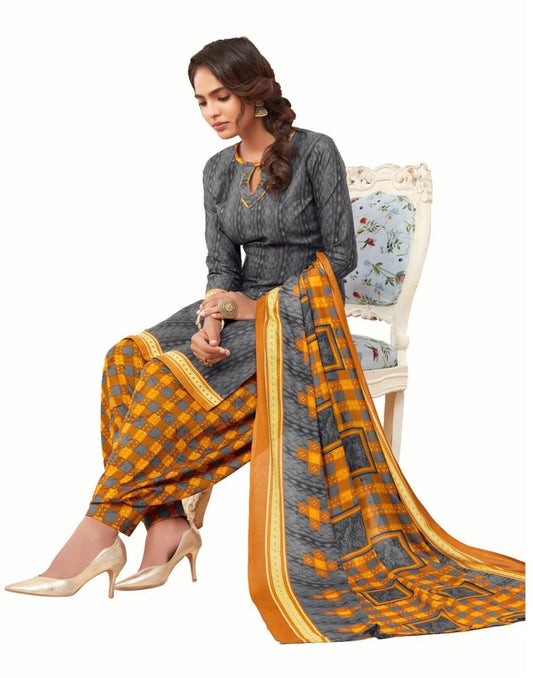 Talismanic Grey Cotton Printed Unstitched Salwar Suit