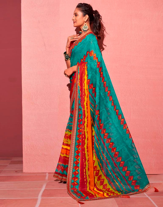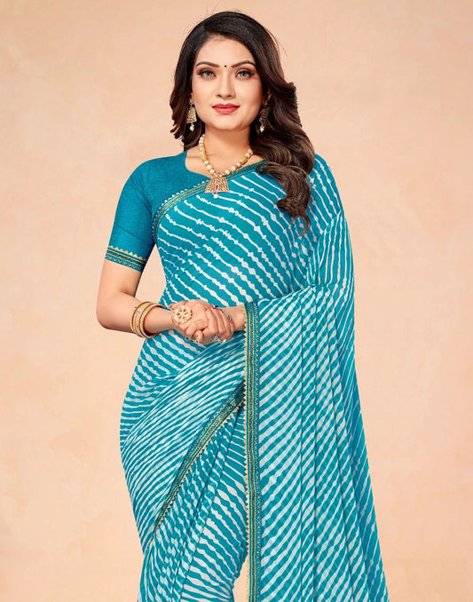 Teal Blue Coloured Lycra Jacquard Partywear saree
