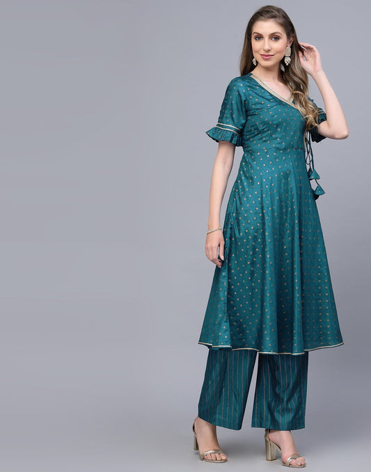 Regular price Rs. 849.00Regular priceUnit price / perRs. 0.00Sale price Rs. 849.00Teal Angarkha style Kurta With Pant Set