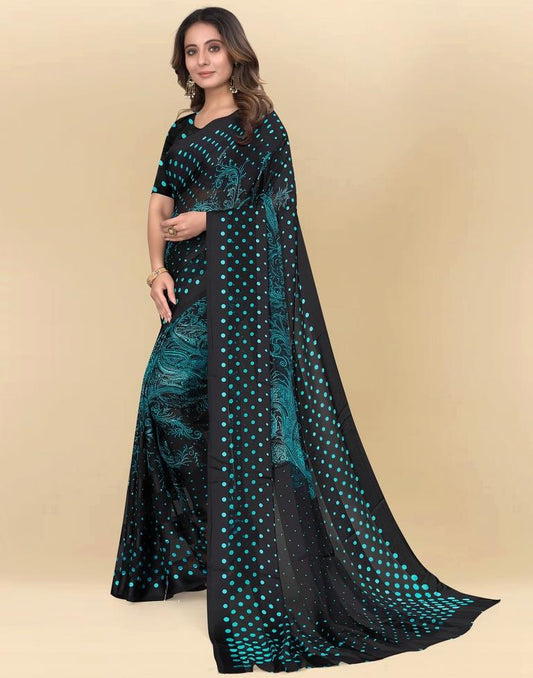 Teal Blue Printed Georgette Saree