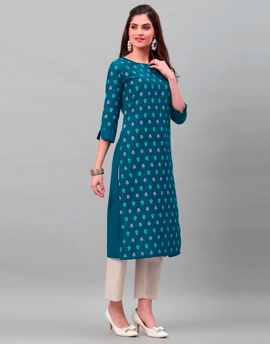 Teal Blue Printed Kurti