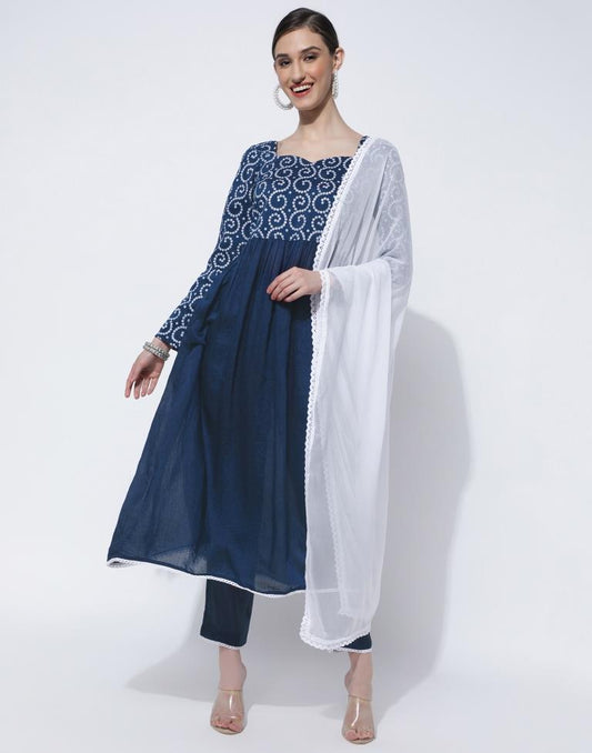 Teal Blue Printed Georgette A-Line Kurta With Pant And Dupatta