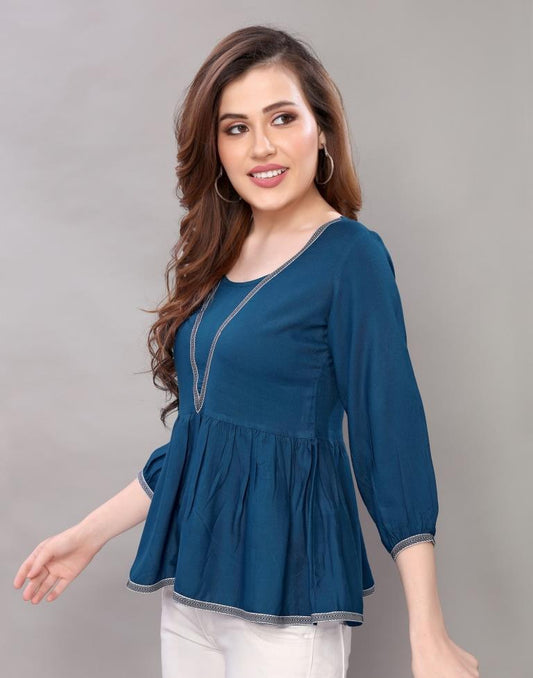 Regular price Rs. 429.00Regular priceUnit price / perRs. 0.00Sale price Rs. 429.00Teal Blue Rayon Top