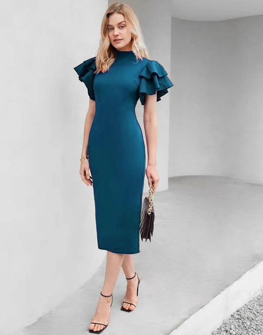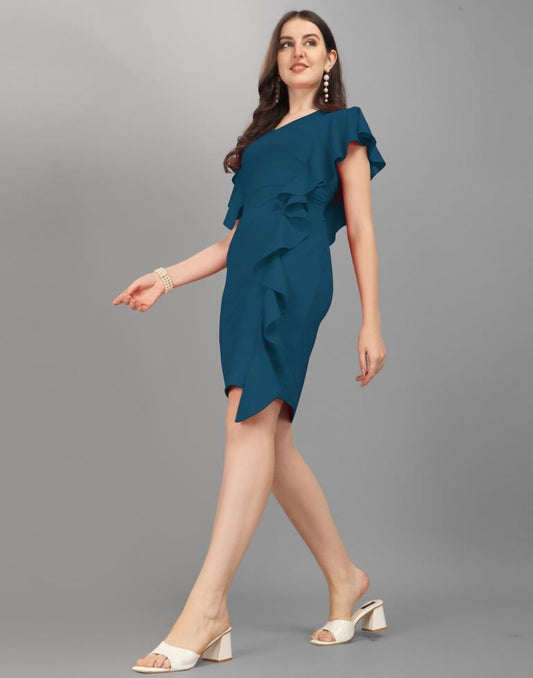 Regular price Rs. 499.00Regular priceUnit price / perRs. 0.00Sale price Rs. 499.00Teal Blue Ruffled Pencil Bodycon