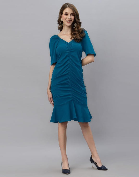 Regular price Rs. 509.00Regular priceUnit price / perRs. 0.00Sale price Rs. 509.00Teal Blue Ruched Bodycon