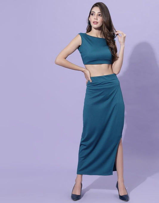 Regular price Rs. 489.00Regular priceUnit price / perRs. 0.00Sale price Rs. 489.00Teal Blue Solid Co-Ords Set