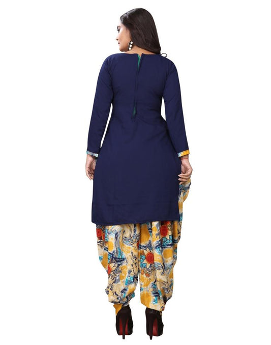 Trendy Navy Blue Printed Unstitched Salwar Suit