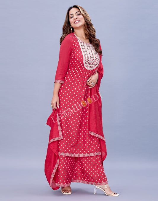 Regular price Rs. 1,269.00Regular priceUnit price / perRs. 0.00Sale price Rs. 1,269.00Tomato Pink Kurti With Palazzo And Dupatta