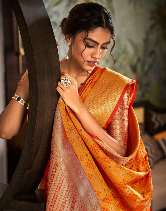 Turmeric Yellow Chiffon Bandhani Printed Saree