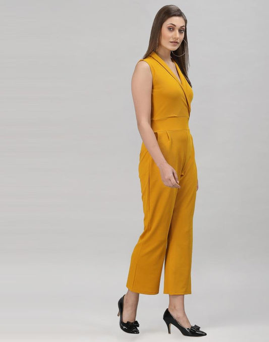 Turmeric Yellow Coloured Lycra Plain Jumpsuit