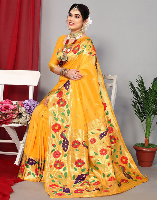 Turmeric Yellow Paithani Silk Saree