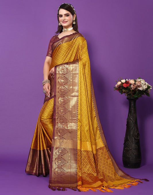 Turmeric Yellow Silk Weaving Banarasi Saree