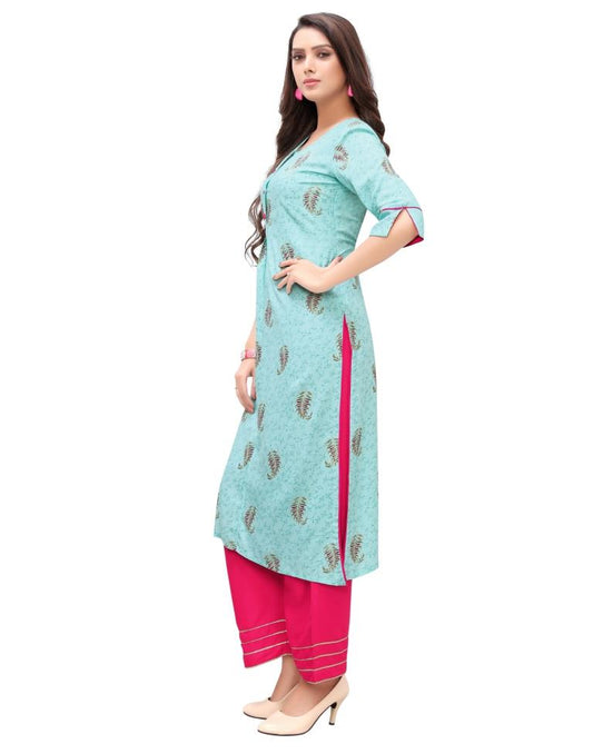 Regular price Rs. 549.00Regular priceUnit price / perRs. 0.00Sale price Rs. 549.00Turquoise Blue Foil Printed Rayon Kurti