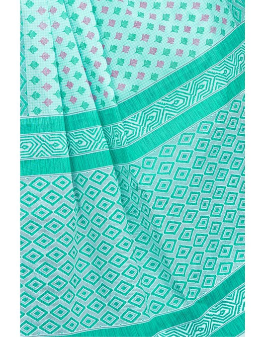 Turquoise Blue Coloured Dyed Chiffon Saree