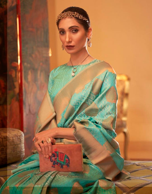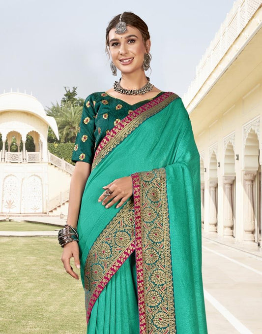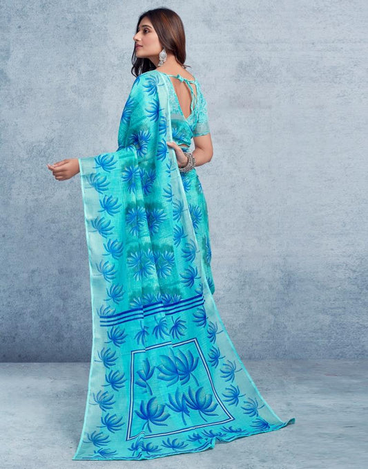 Turquoise Heavy Chiffon Leriya Printed Saree