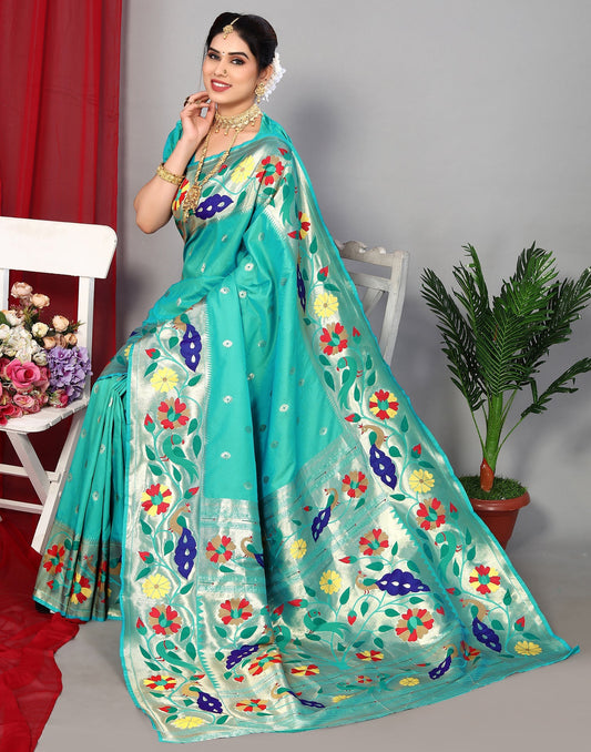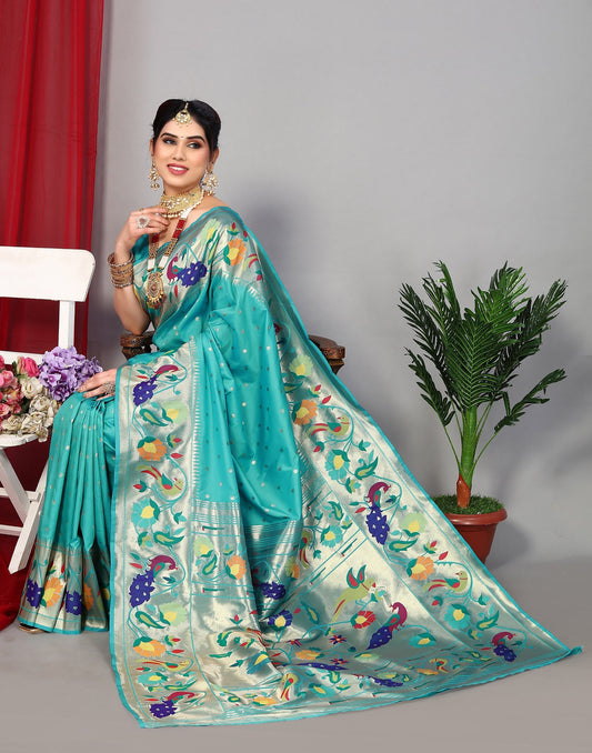 Turquoise Paithani Silk Saree