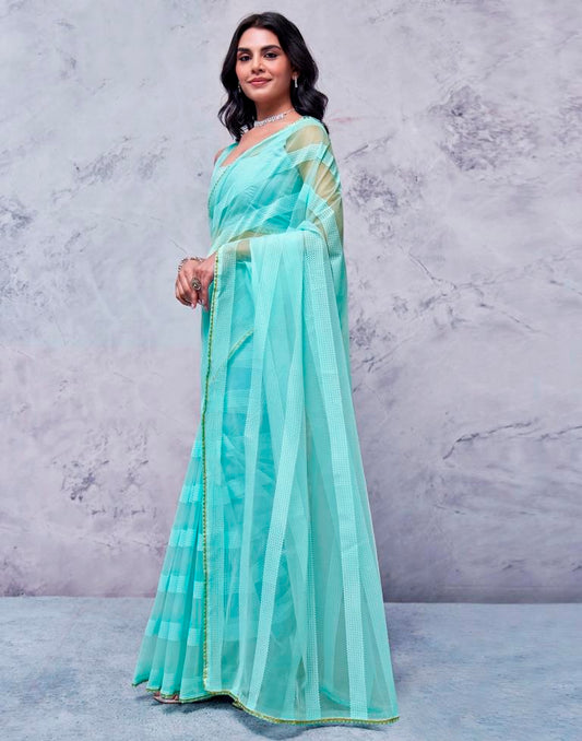 Turquoise Organza Plain Saree