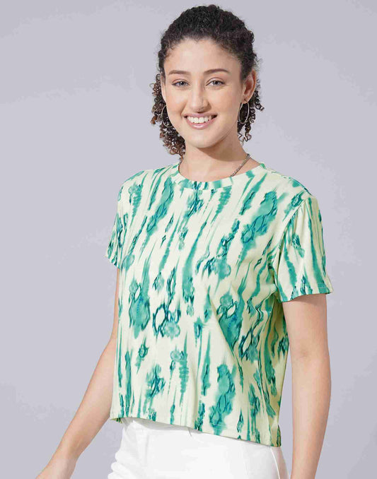 Turquoise Lycra Printed T-shirt