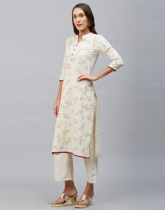 White Embroidery Cotton Flared Kurta With Pant And Dupatta