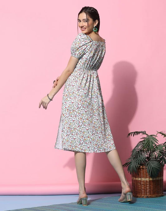 Regular price Rs. 499.00Regular priceUnit price / perRs. 0.00Sale price Rs. 499.00White Floral Printed Slit Dress