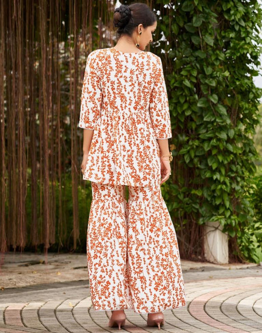 Regular price Rs. 939.00Regular priceUnit price / perRs. 0.00Sale price Rs. 939.00White Orange Rayon Printed Lace Co-ord Set