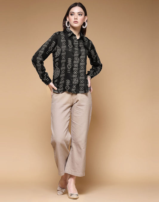 Black Printed Silk Shirt