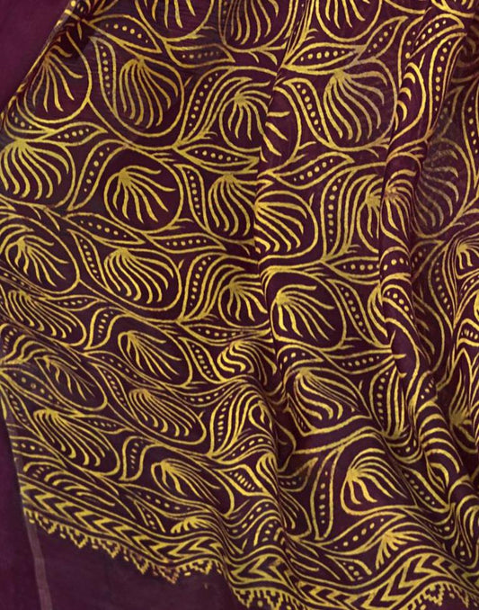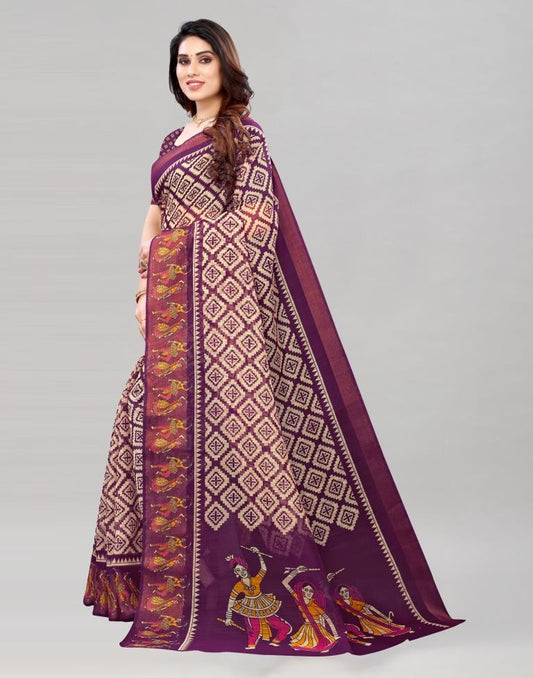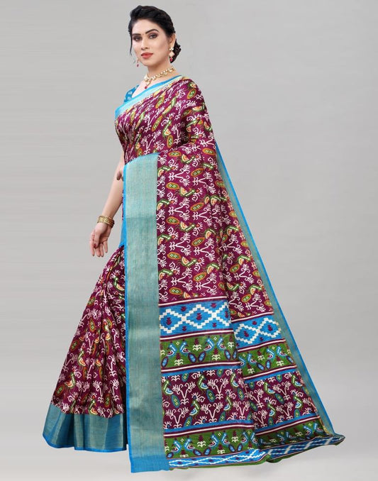 Wine Coloured Poly Cotton Patola Printed Casual saree