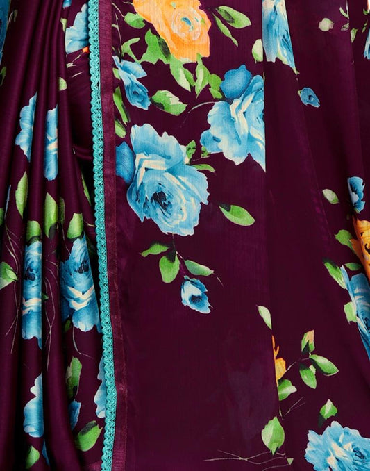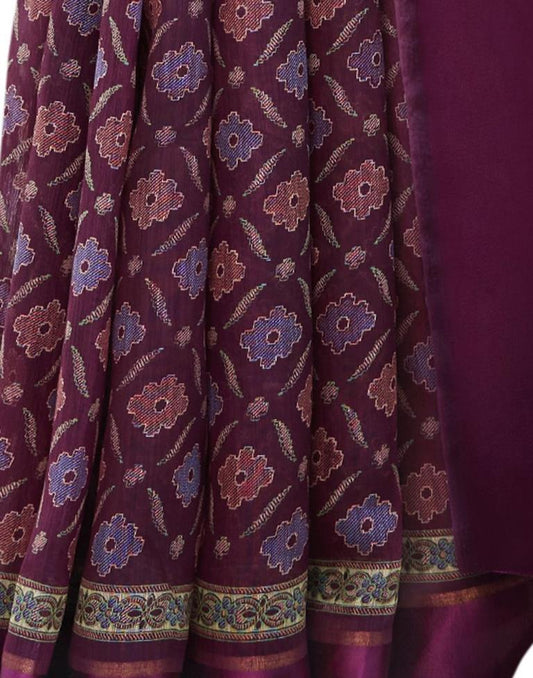 Wine Chinon Printed Saree