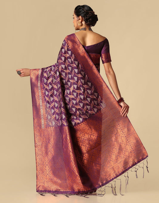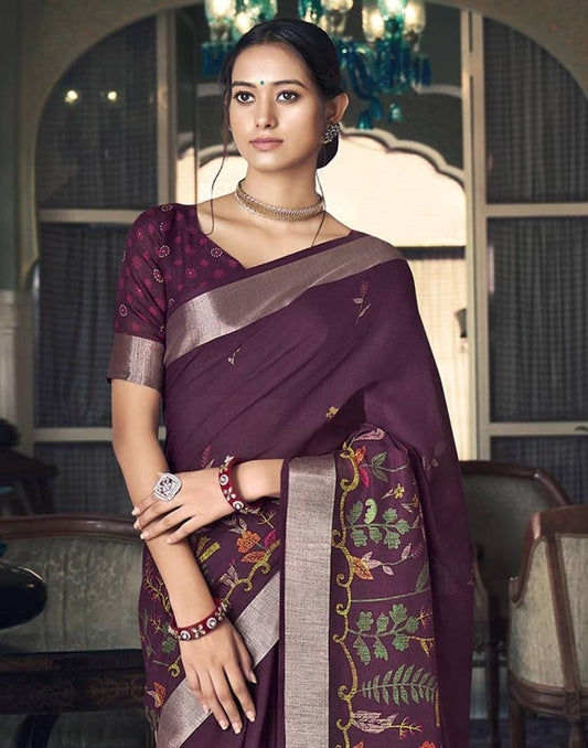 Wine Coloured Poly Cotton Jacquard Saree