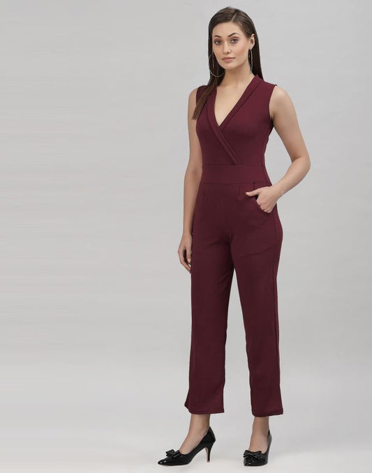 Wine Coloured Lycra Plain Jumpsuit