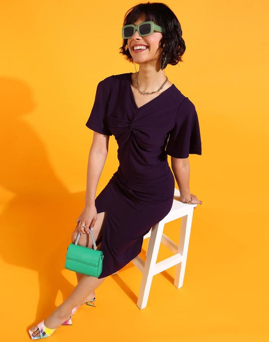 Regular price Rs. 529.00Regular priceUnit price / perRs. 0.00Sale price Rs. 529.00Wine Short slit bodycon dress