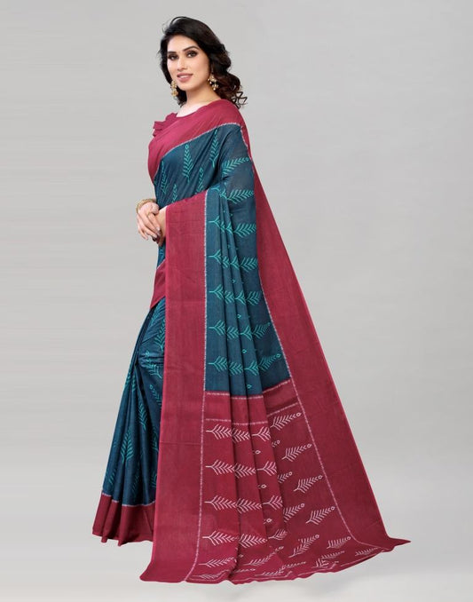 Yale Blue Coloured Cotton Printed Saree