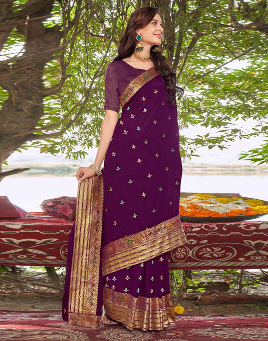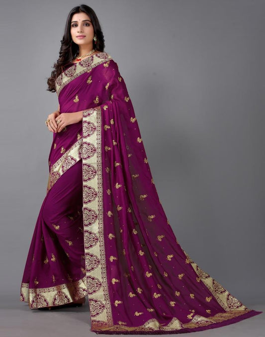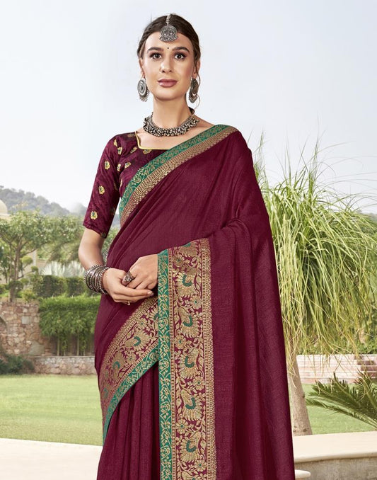 Wine Vichitra Embroidery Saree