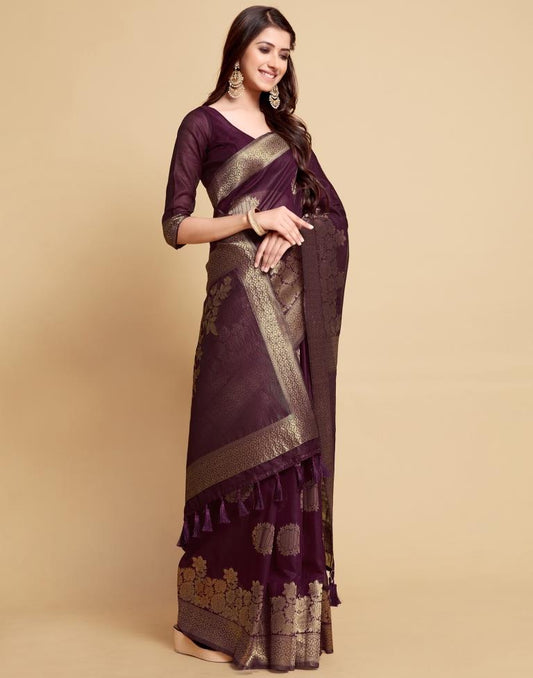 Wine Weaving Silk Saree