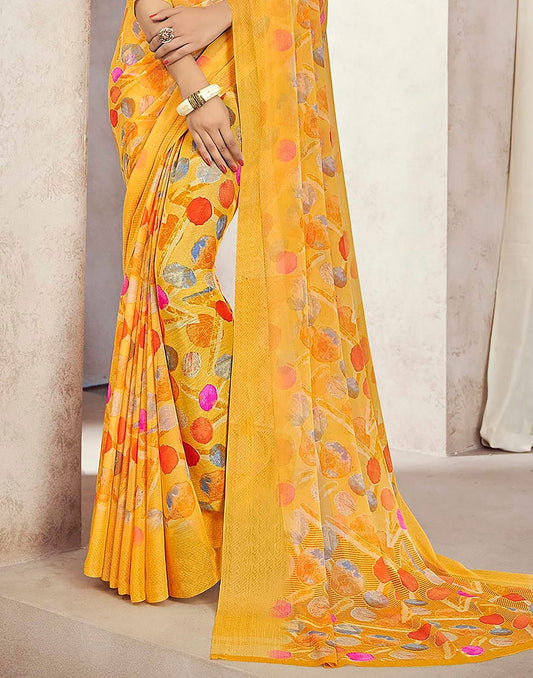 Yelllow Chiffon Geometric Printed Saree