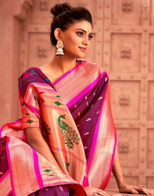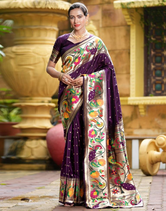 Wine Weaving Silk Paithani Saree