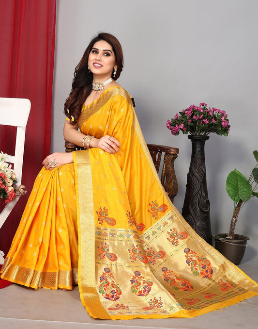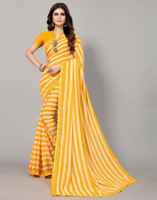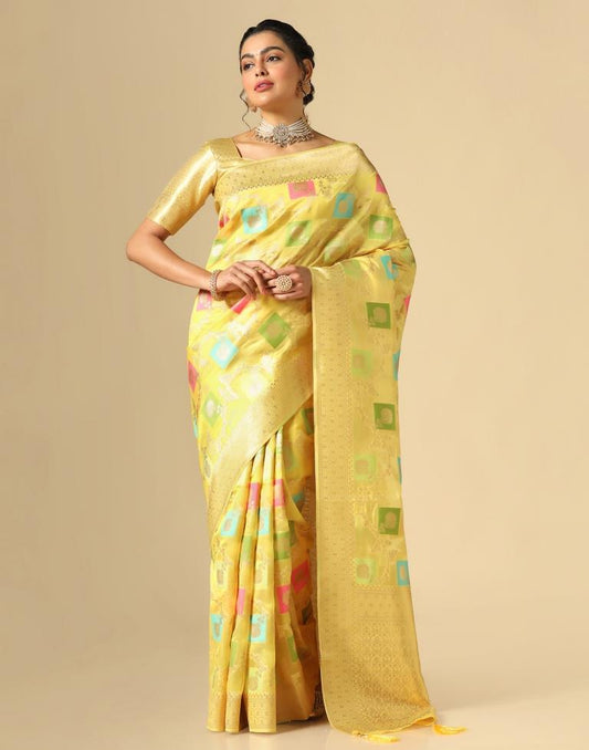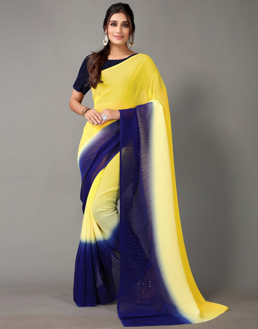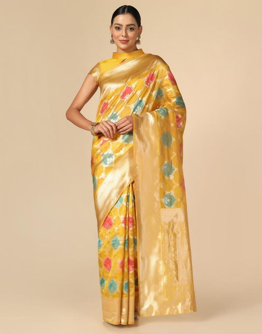 Yellow And Multicoloured Art Silk Stone Work Saree