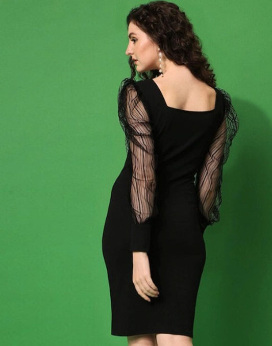 Black Puff Sleeve Bodycon Dress