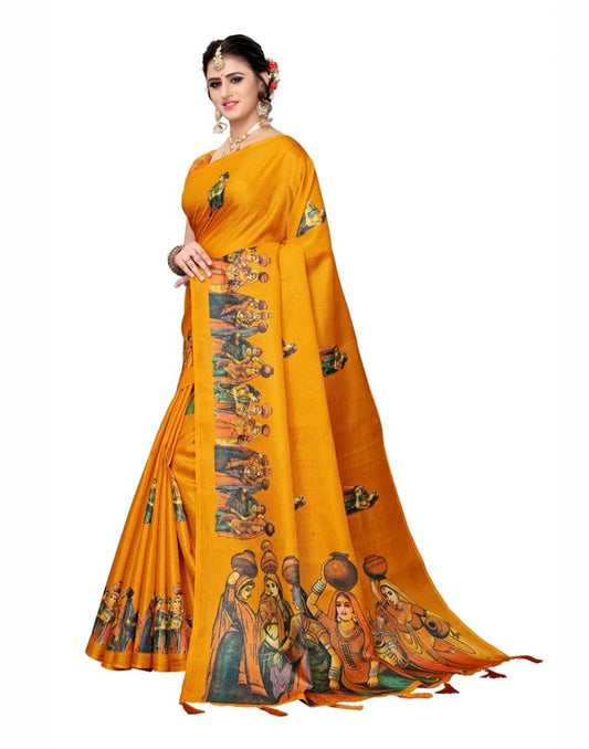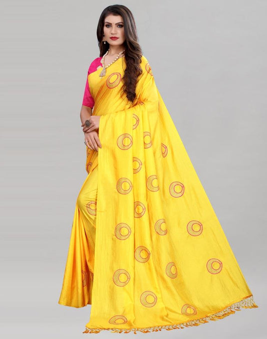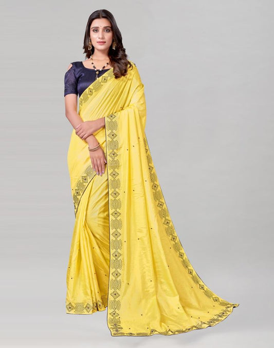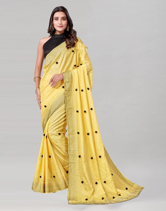 Yellow Coloured Poly Silk Hot Fixing Saree