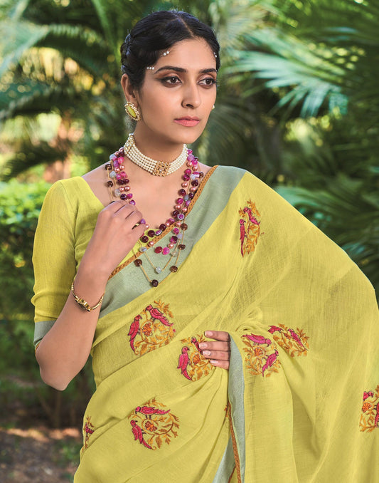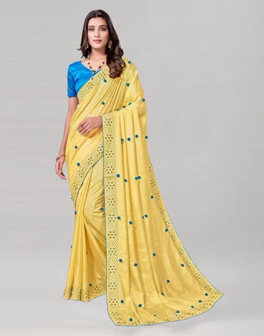 Yellow Coloured Poly Silk Embroidered Partywear saree