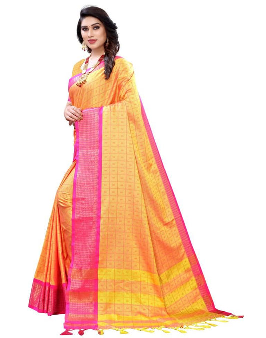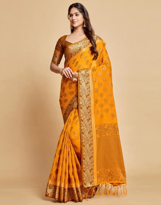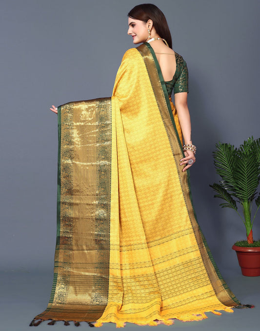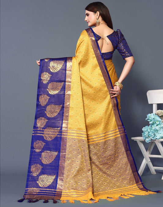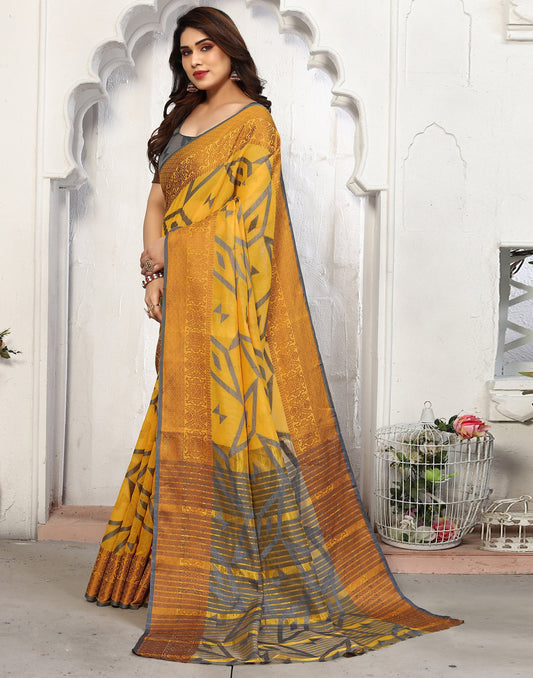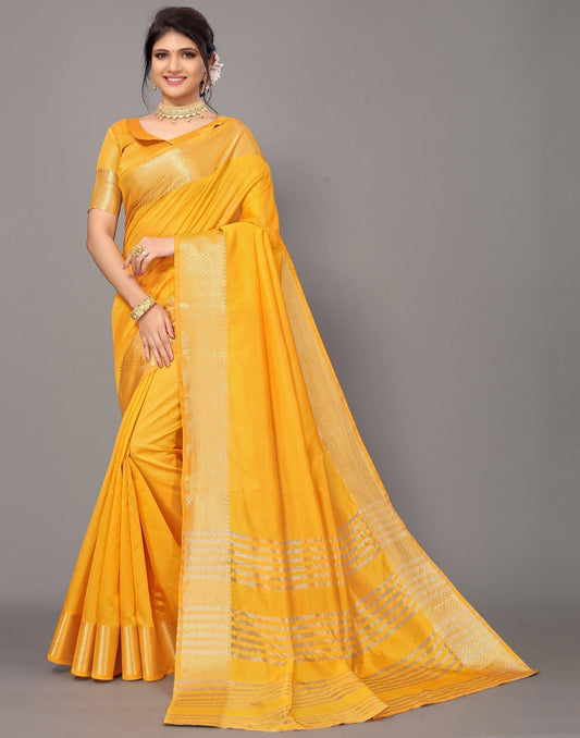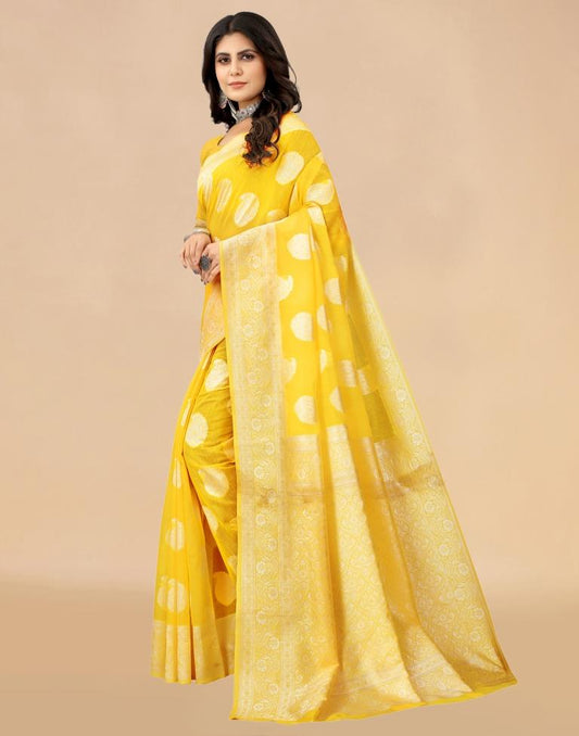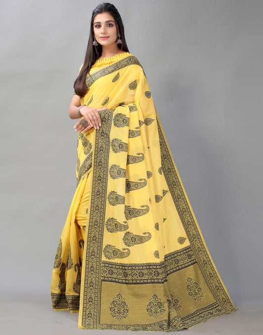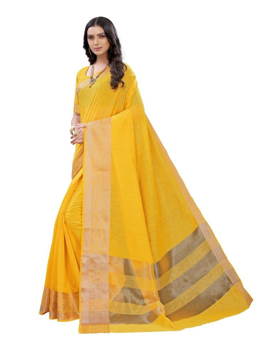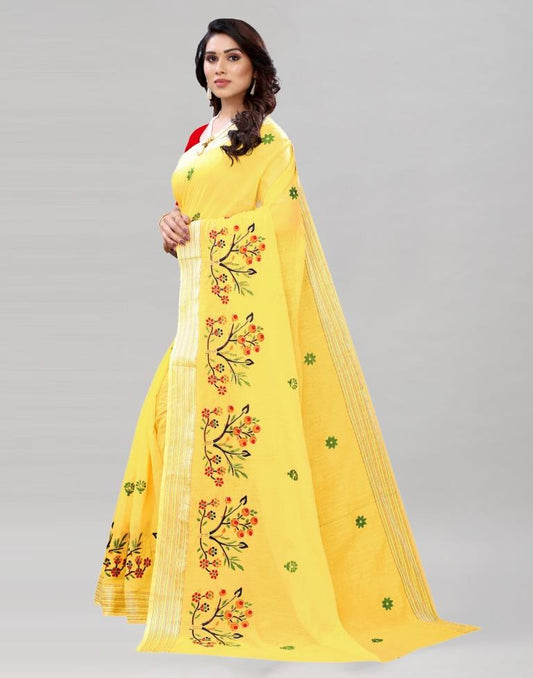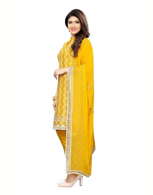 Yellow Cotton Unstitched Thread Embroidered Unstitched Salwar Suit