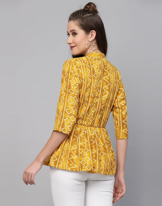 Regular price Rs. 419.00Regular priceUnit price / perRs. 0.00Sale price Rs. 419.00Yellow Gathered Bandhani Printed Top