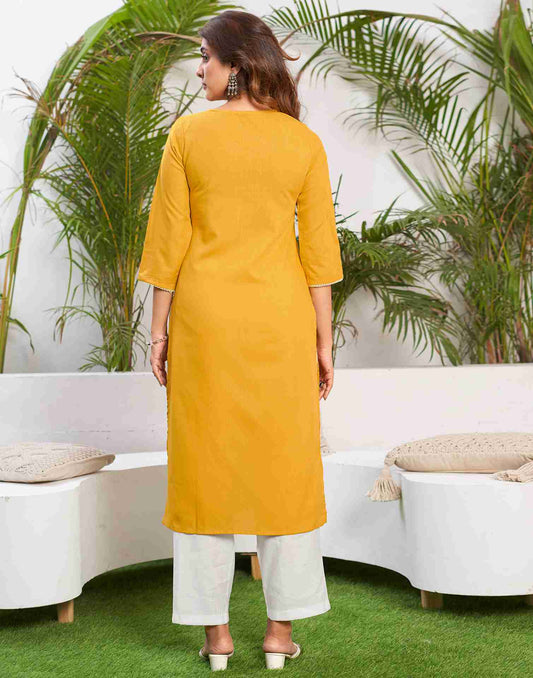 Regular price Rs. 579.00Regular priceUnit price / perRs. 0.00Sale price Rs. 579.00Yellow Embroidery Cotton Straight Kurta