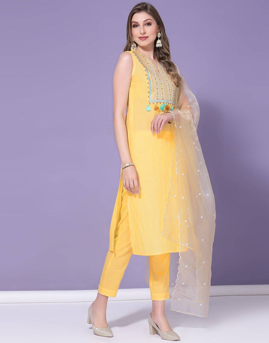 Regular price Rs. 1,169.00Regular priceUnit price / perRs. 0.00Sale price Rs. 1,169.00Yellow Embroidery Kurta with Pant and Dupatta