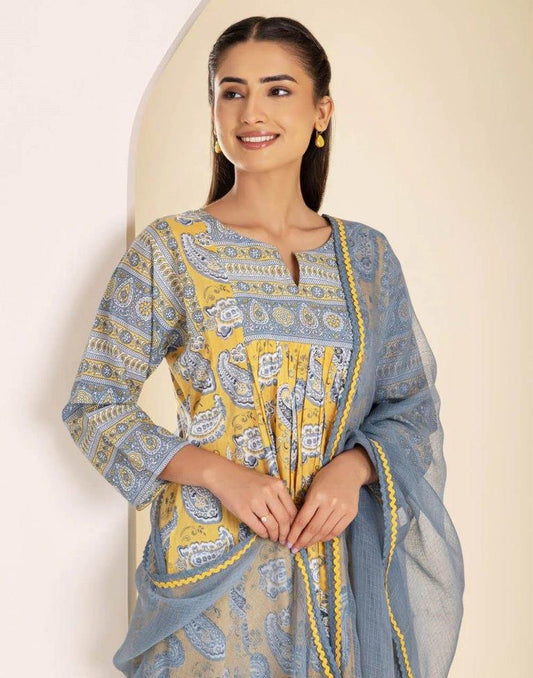 Regular price Rs. 1,159.00Regular priceUnit price / perRs. 0.00Sale price Rs. 1,159.00Yellow Gathered Kurta With Pant And Dupatta