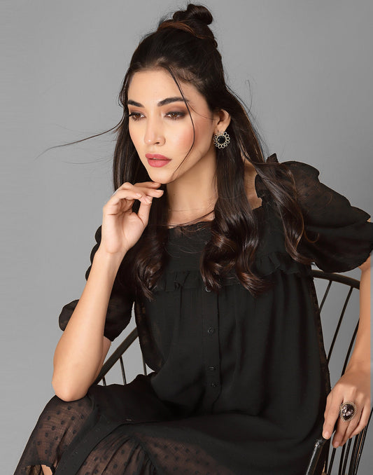 Regular price Rs. 569.00Regular priceUnit price / perRs. 0.00Sale price Rs. 569.00Black Rayon Embroidery Top
