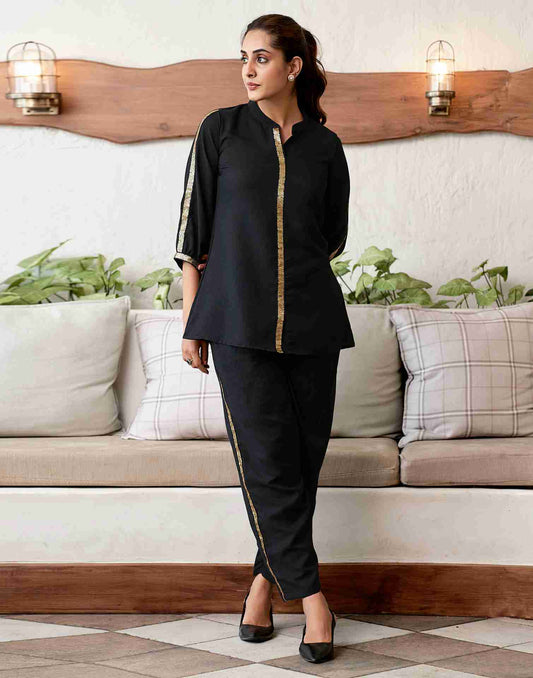 Regular price Rs. 919.00Regular priceUnit price / perRs. 0.00Sale price Rs. 919.00Black Rayon Plain Co-ord Set