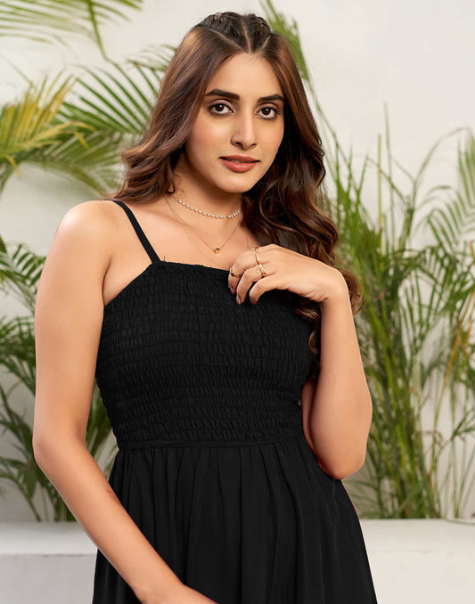 Regular price Rs. 609.00Regular priceUnit price / perRs. 0.00Sale price Rs. 609.00Black Rayon Plain Flared Dress
